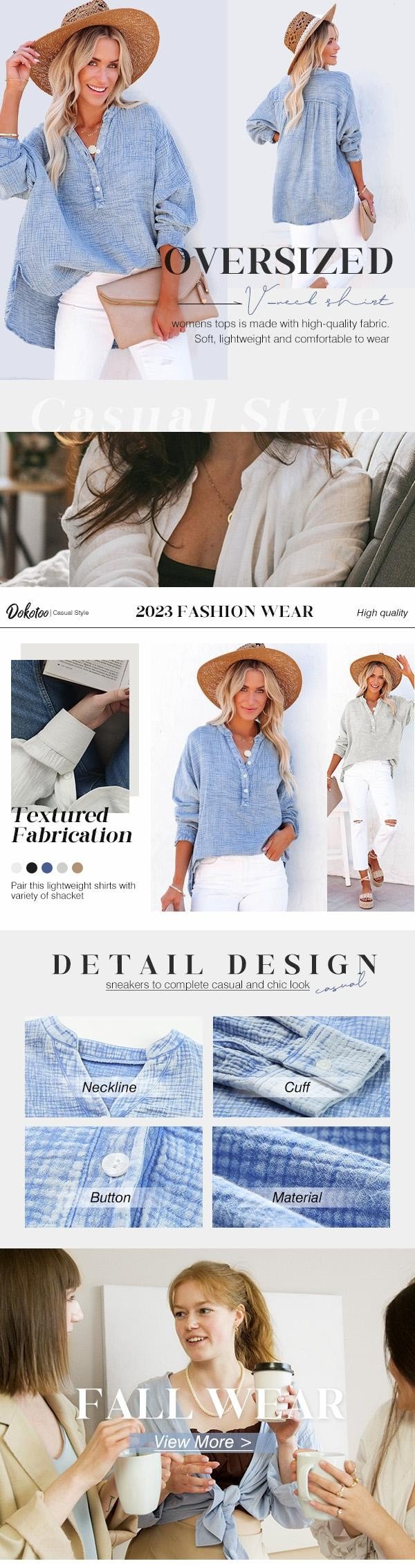 ✨✨Buy 2 Pcs Free Shipping - Womens Casual Gauze Button Neck Long Sleeve Oversized BlousesTops